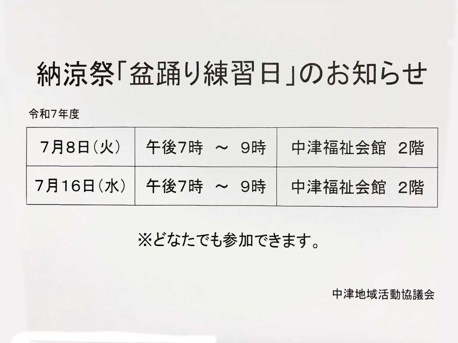 7月26日(土)、中津小学校で開かれる納涼祭。