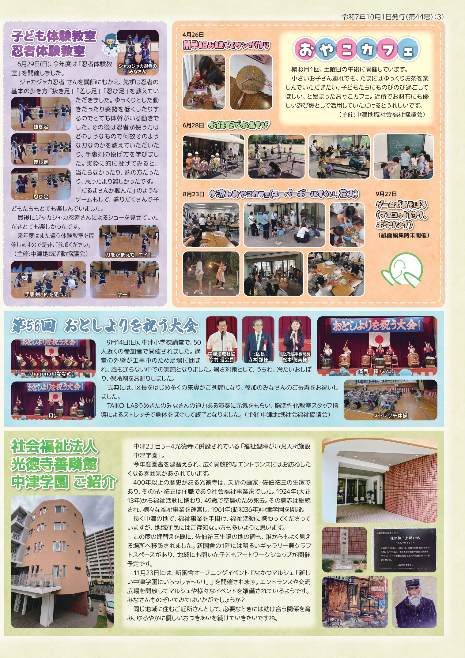 中津地域活動協議会、今年度上半期の活動を紹介しています。 施設や人の紹介もぜひお読みいただきたいです。 中津福祉会館で、手に取っていただけます。