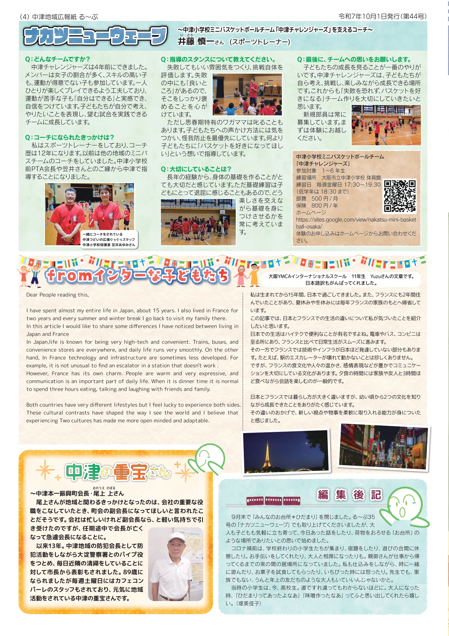 中津地域広報誌るーぷは、中津地域活動協議会発行の広報誌です。 最新36号には、中津小学校に通うこどもたちの登下校を毎日暖かく見守って下さっ...