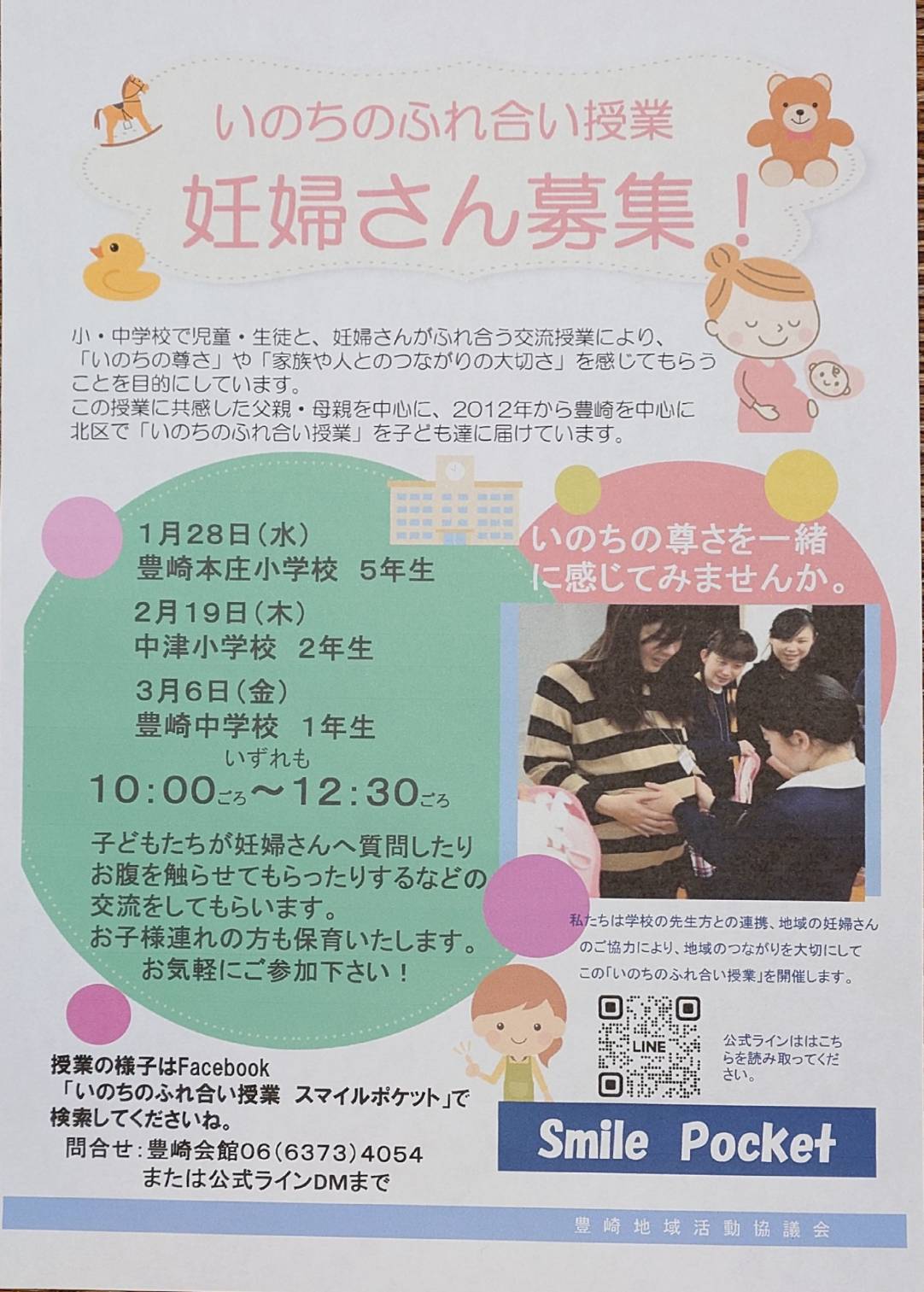 この授業は、10年続く親たちから子どもたちにいのちの尊さ、大切さを伝える授業で、特別ゲストとして妊婦さんに来ていただき、子どもたちと交流していただいています。